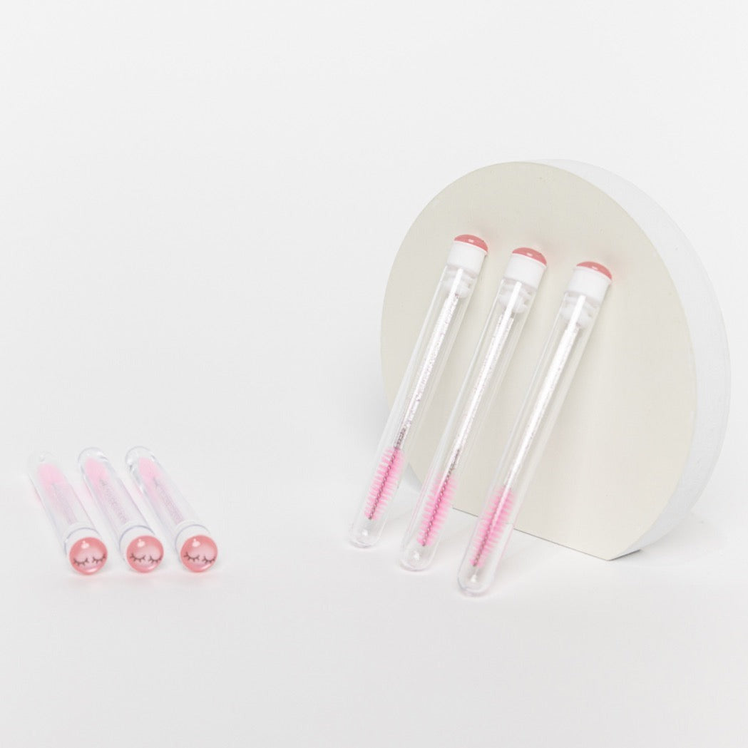 A reusable lash brush in a plastic tube. No matter where you keep these, they will be free from dust and dirt!